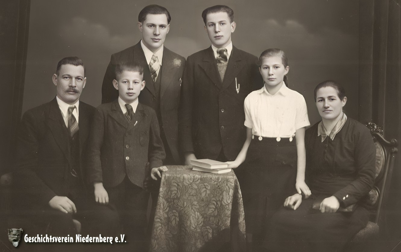Familienfoto aus Pelechen, v. l.n.r.: Vater Alwis, Anton (vorne), Luis, Franz, Anni und Mutter Anna Zieslerr.