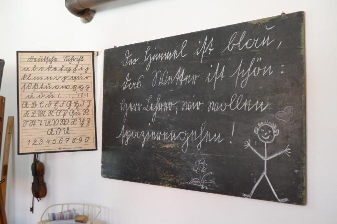 Berthold erinnert sich im "Historischen Klassenzimmer" an seine Schulzeit zurück