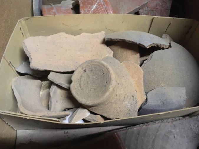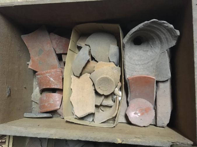 Im Nebengebäude der Sandsteinschule lagern noch viele unbearbeitete Ausgrabungsstücke. Zumeist handelt es sich um Sammlungen, die in den letzten Jahren neu hinzugekommen sind. Für die interessantesten unter diesen Niedernberger Funden ist eine Bestimmung und Archivierung geplant. Vorher müssen die Stücke noch sorgfältig gereinigt werden. Aus der Bronzezeit und der römischen Kaiserzeit, übers Mittelalter bis hin zur Neuzeit sind Fundstücke darunter, ein Zeitzraum von fast 4000 Jahren (von ca. 2000 v.Chr. bis ca. 1900 n.Chr.). Der überwiegende Teil jedoch stammt aus der römischen Belagerung.