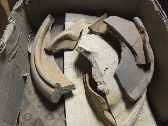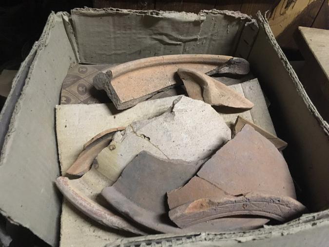 Im Nebengebäude der Sandsteinschule lagern noch viele unbearbeitete Ausgrabungsstücke. Zumeist handelt es sich um Sammlungen, die in den letzten Jahren neu hinzugekommen sind. Für die interessantesten unter diesen Niedernberger Funden ist eine Bestimmung und Archivierung geplant. Vorher müssen die Stücke noch sorgfältig gereinigt werden. Aus der Bronzezeit und der römischen Kaiserzeit, übers Mittelalter bis hin zur Neuzeit sind Fundstücke darunter, ein Zeitzraum von fast 4000 Jahren (von ca. 2000 v.Chr. bis ca. 1900 n.Chr.). Der überwiegende Teil jedoch stammt aus der römischen Belagerung.