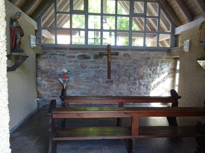 Die Dorfkapelle beherbergt Heiligenfiguren und den "Herz-Jesu-Stein" aus dem 1965 abgetragenen Heiligenhäuschen.