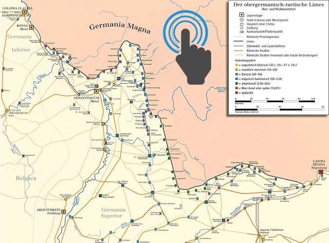 Der komplette Obergermanisch-Raetische Limes in Deutschland, mit 550 km das längste Bodendenkmal Europas