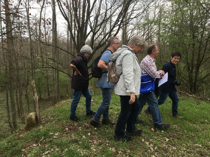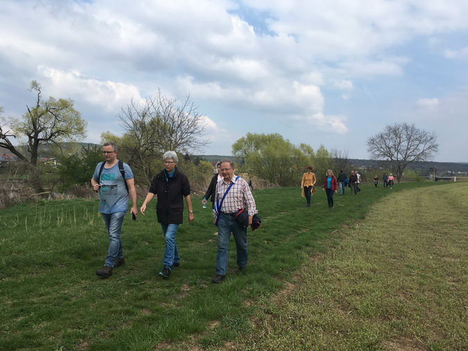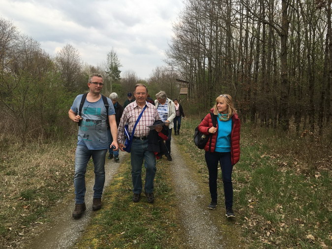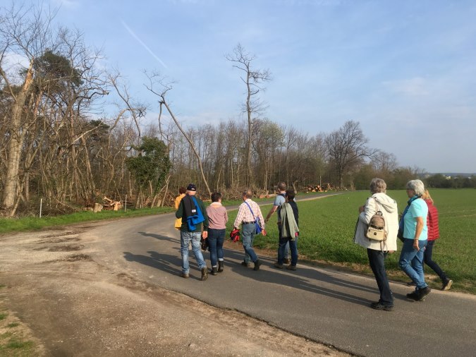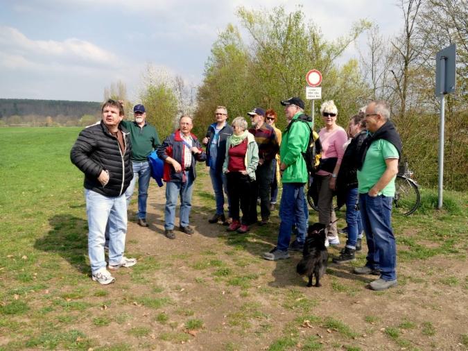 Der Geschichtsverein Niedernberg hatte am vergangenen Samstag erneut für interessierte Teilnehmer zu einer Grenzwanderung an die nördliche Gemarkungsgrenze, welche gleichzeitig auch die Grenze zum Landkreis Aschaffenburg darstellt, eingeladen. Da in absehbarer Zeit die geplante Baustraße für den Schleusenneubau durch dieses Gebiet führen soll, sah man hier die vielleicht letzte Möglichkeit, diese Wanderung durchzuführen. Bei schönstem Frühlingswetter wanderte die 16-köpfige Gruppe unter der Leitung des Heimatpflegers Albert Wagner anfangs an die Schleuse Obernau, wo anhand von Plänen über den geplanten Verlauf der Baustraße und die Lage der neuen Schleuse diskutiert wurde, da diese für einschneidende Veränderungen auf der Niedernberger Gemarkung sorgen wird. Von der Schleuse ging es dann am Main entlang Richtung Wasserwerk. Kurz davor wurden die ersten Grenzsteine gefunden und es ging von da ab durch das Tannenwäldchen hoch in Richtung Kreisstraße. Im Tannenwäldchen ging es über Stock und Stein durch ehemaliges Kiesabraumgebiet aus den 1960er Jahren. Allgemein überrascht war man durch die große Anzahl an vorhandenen Grenzsteinen und welche enormen Schäden der Sturm im September 2018 im Wald angerichtet hat. Der Rückweg führte auf dem Streckenverlauf der zukünftigen Baustraße am Spielplatz vorbei, welcher ebenfalls der Baumaßnahme weichen soll. Albert Wagner lieferte zu vielen Grenzsteinen interessante Informationen und zahlreiche Anekdoten aus vergangener Zeit. Daher kamen die Teilnehmer nach etwa 3 Stunden mit vielen neuen Eindrücken und Informationen am Ausgangspunkt an. (Schriftführung, Denis Bechtel)