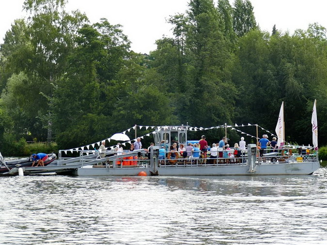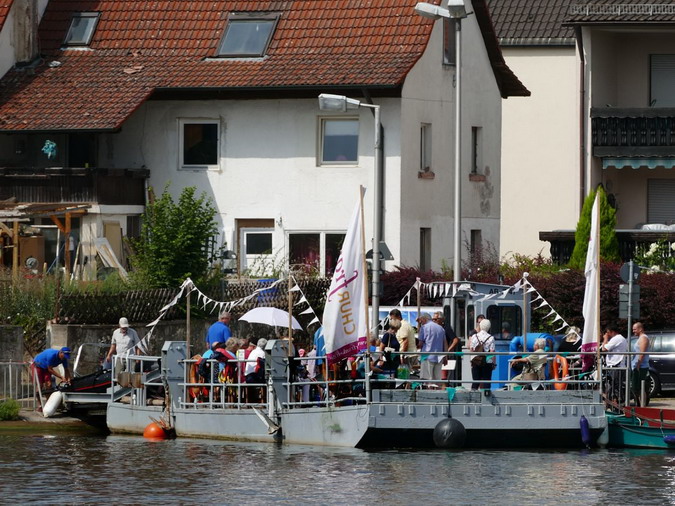 Bei diesem Bild (durch Jürgen von Sulzbach aus fotgrafiert) scheint die Fähre ganz nah am Niedernberger Ufer zu fahren, was aber nicht so richtig der Fall war, siehe nächstes Bild. ... Tolles Feeling herrschte an Bord, man genoß die Fahrt.