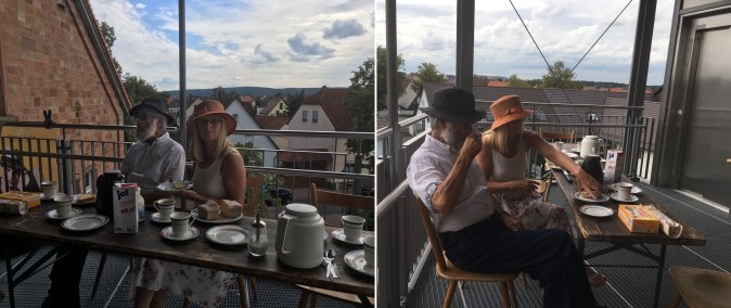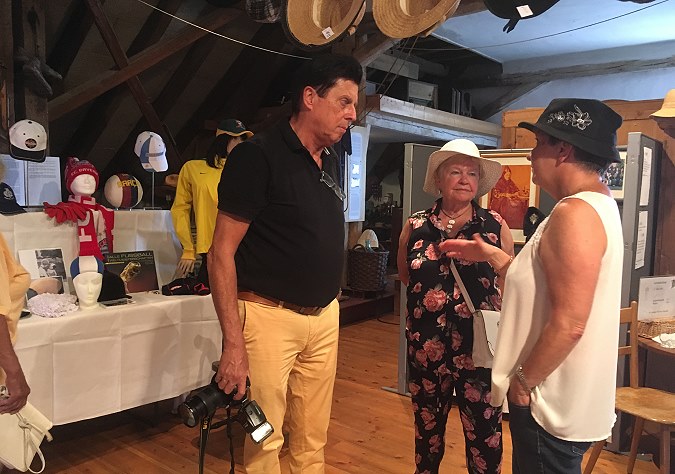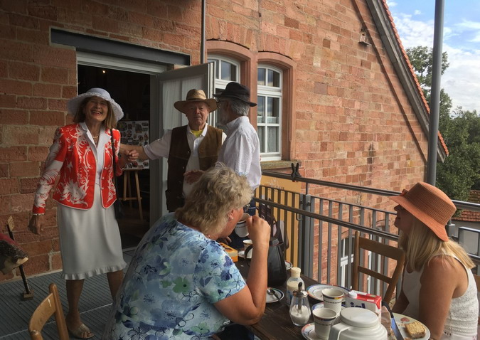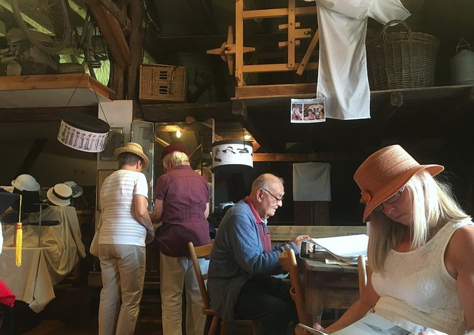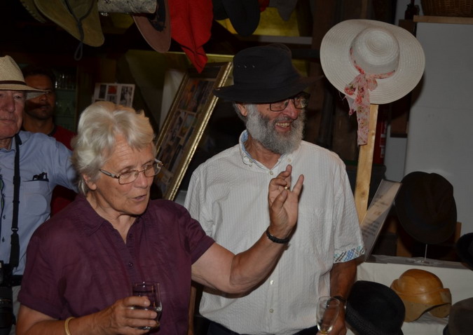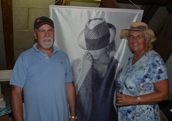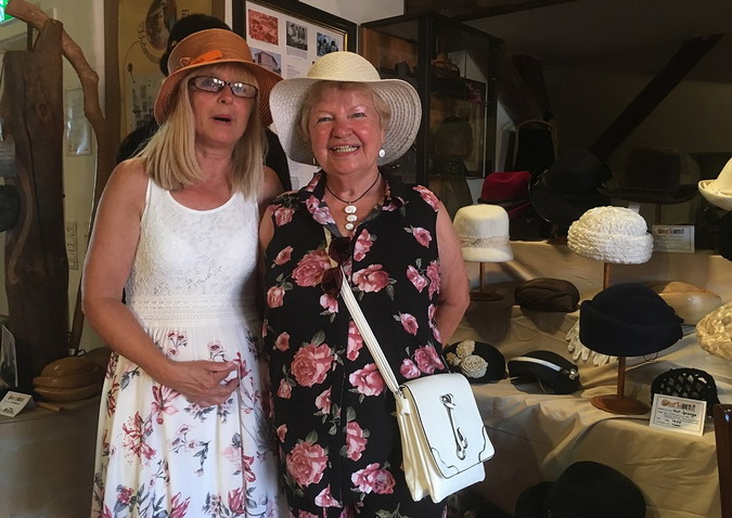 "Gut behuteter" Besuch aus Oberbessenbach. Die beiden hatten auch ein paar richtig interessaante Stücke zur Ausstellung beigetragen, einige davon hängen hier an der "Leine", u.a. der sandfarbene, australische Outback-Hut aus Känguruleder.