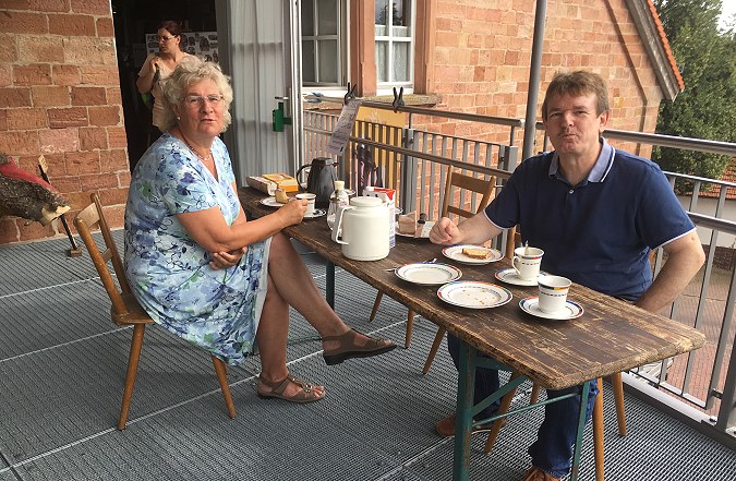 Die Aktion "Rotkäppchen" von Maria tat nach dem langen Herumstehen richtig gut. Für ihr Herbeiholen von Kaffee, Gebäck und Kuchen gab's für Maria sogar ein "Busserl" von Mariette.