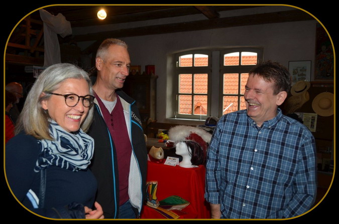 Wir bedanken uns bei den zahlreichen Gästen und freuen uns, dass unsere Idee mit den Hüten so gut ankam. Der allgemeine Tenor ging in die Richtung "Großartige Ausstellung - wir sind begeistert", was auch mehrere Einträge im Gästebuch widerspiegeln. Und dass "Mund zu Mund Werbung" wichtig und motivierend ist, zeigte ein mitgehörter Dialekt zwischen zwei Besuchern: "Servus, wås treibt dånn disch doheer?" - "Moin Nåchber wor vorhin doo un måånt zummerr, die Hied in derre Ausstellung misst isch mä unbedingt oklotze" ... so etwas mitbekommen zu dürfen ist natürlich ein zuckersüßer Lohn für den enormen Aufwand, der hinter einer derartigen Ausstellung steckt.