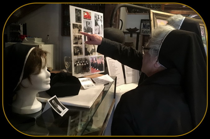 Links im Bild: Der Schleier von Schwester Damaris und daneben das Original-Birett von Pfarrer