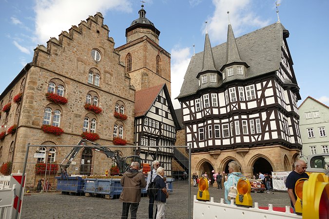 Sonntag Morgen um 11 Uhr bei strahlendem Sonnenschein auf dem Alsfelder Marktplatz. Im Hintergrund das Rathaus
