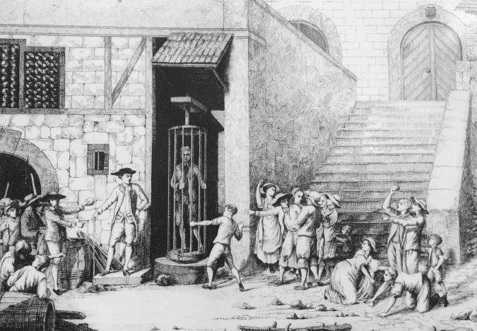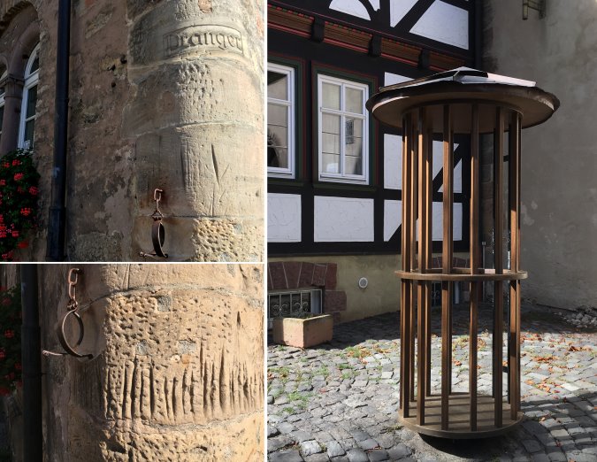 Verletzern mittelalterlicher Regeln um den Hals gelegt wurden. Somit war man direkt am Marktplatz dem Spott der Einwohner ausgesetzt, und wurde beworfen und bespuckt.