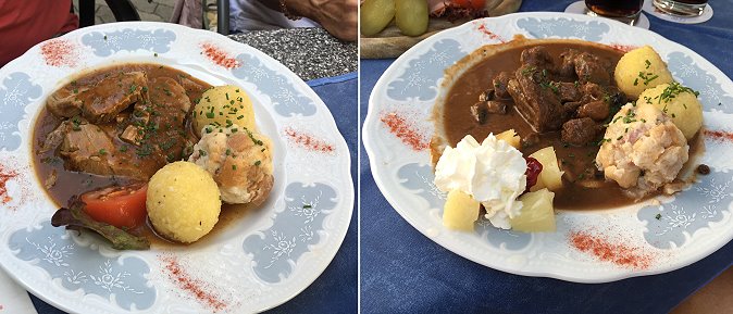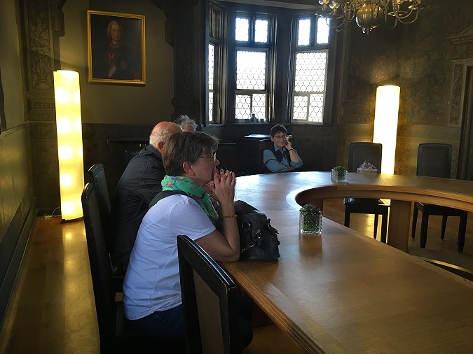 Aufgrund von Bauarbeiten war es hier am Rathaus höllisch laut, mit Rüttlern wurde der Boden gestampft. Kurzzeitig musste sogar ein Baustopp eingelegt werden, damit man bei der Hochzeit am Rathaus (siehe Bild oben) sein eigenes Wort verstand. Unser Stadtführer hakte diese Stellen ums Rathaus dann auch im Schnelltempo ab und verprach uns, bei der ebenfalls mit ihm gebuchten Rathausführung nochmals detailliert darauf einzugehen.