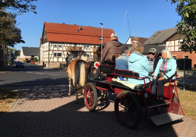 Planwagen- / Kutschfahrt ins Grüne, Einkehr Gasthof Gemmer, Wanderung zur Burg Herzberg, Burgführung, Abendessen im Kartoffelsack, Alsberg bei Nacht