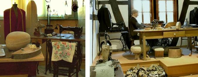 Kragenböcke in der Heimschneiderei, hier rechts im Bild das Heimschneidermuseeum Großwallstadt. Unser Nachbarort stellte ja eine Hochburg in der Schneiderei-Epoche am Untermain dar.