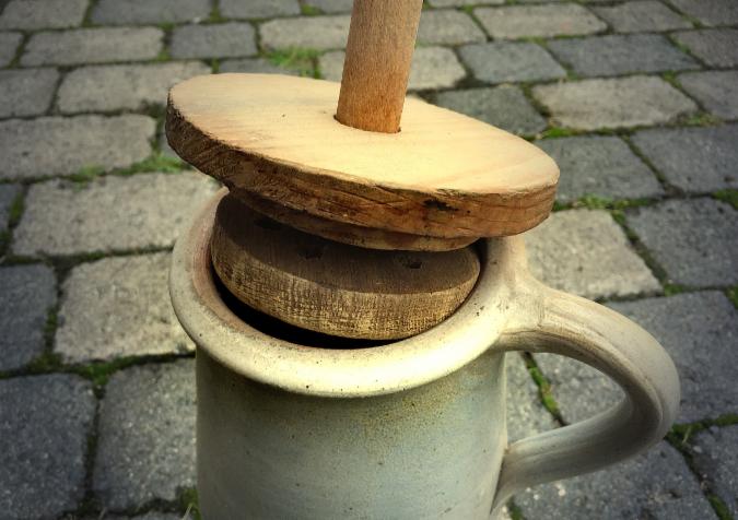 Früher nannte man es "Knochenbrecher", heutzutage ist Knochenpresse der gängige Ausdruck. Denn ähnliche Geräte gibt es auch aktuell noch, um biologisches Futter aus Grünabfällen und Knochen für vitale und gesunde Tiere herzustellen. Der abgebildete "Kochenbrecher" war früher seitlich an einem Tisch im Stall geschraubt, wo die aus Essenresten gesammelten Knochen zerkleinert und zu Hühnerfutter verarbeitet wurden.