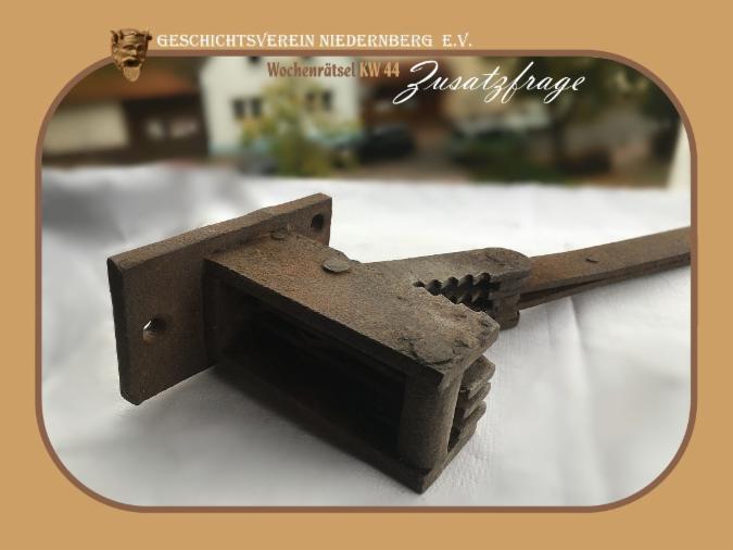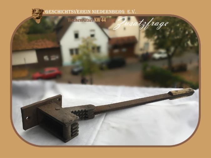 Da das Rätsel auf unserer Facebookseite auf Anhieb aufgelöst wurde, hatten wir noch die nachfolgende Zusatzfrage gestellt. Um welchen Gegenstand handelt es sich hier, wofür wurden diese Teile eingesetzt?