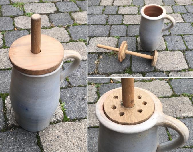 Mit diesem Teil wurden damals von den Maiskolben durch Drehen die Körner gelöst. Sozusagen auf "Nirrenberscherisch" ein "Maisbobbebiggeler". Heute machen das moderne Mähdrescher, aber es gibt für den Hausgebrauch auch aktuell noch andere Geräte, oder halt die Abschab-Methode mit einem Messer. Siehe Fotocollage. Bei den Ferienspielen 2018 durften die Kids den "Maisbobbebioggeler" ausprobieren, hier... der Bericht.