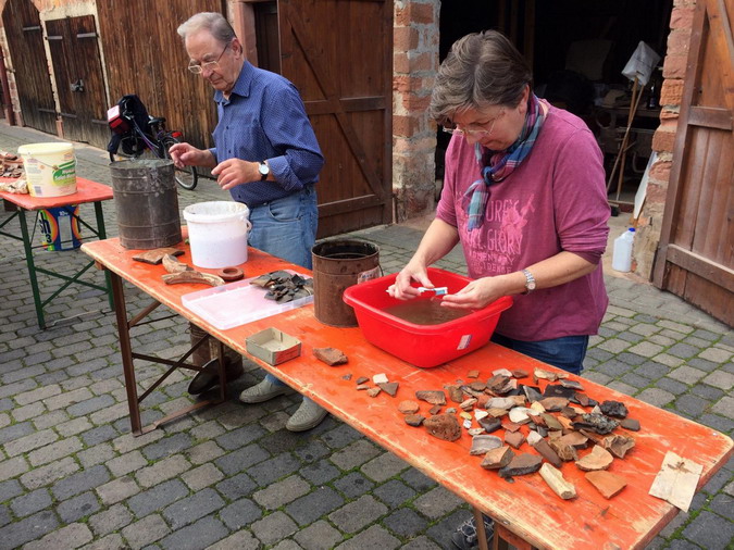 reinigen der restlichen Funde statt, bevor dann die Stücke von einem