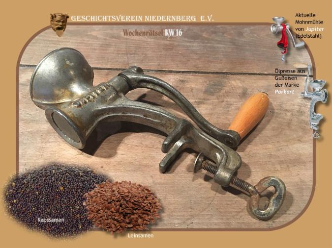 Quetschwerk kann man ölhaltige Saaten wie Lein, Mohn, Raps, Sesam, Soja