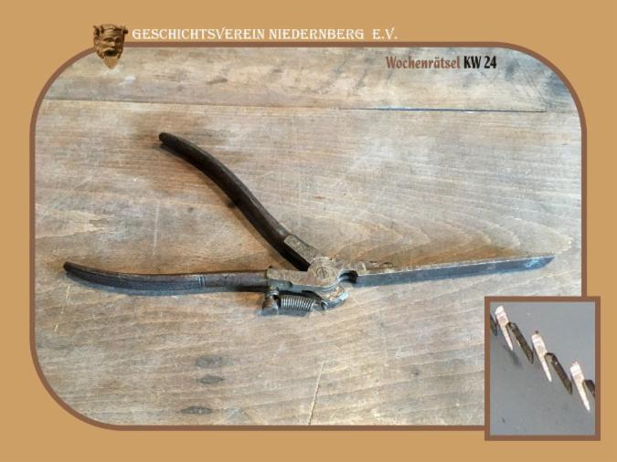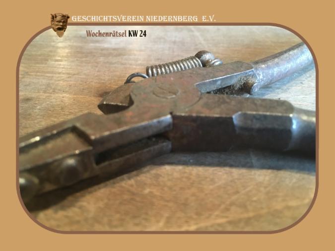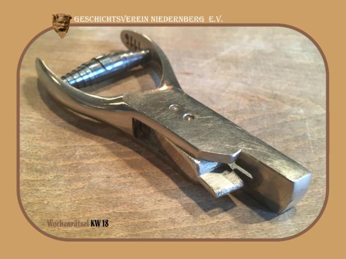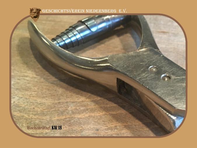 Es handelt sich um eine Kerbschnittzange, eine Markierungszange für Schnittmusterbögen bei der Schneiderei. Die Kerben der Schnittmuster müssen dann beim Nähen aufeinander passen.