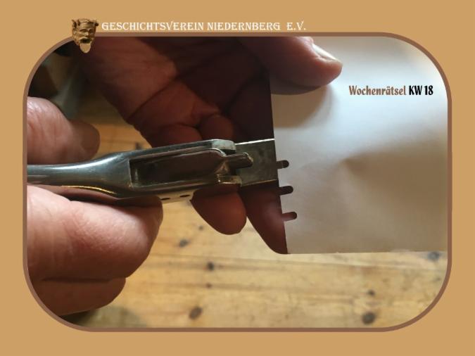Es handelt sich um einen Rähmchenlocher. Diesen verwendet