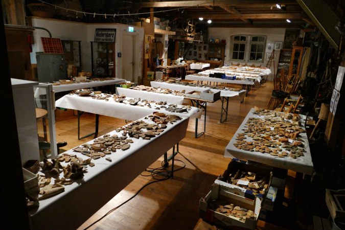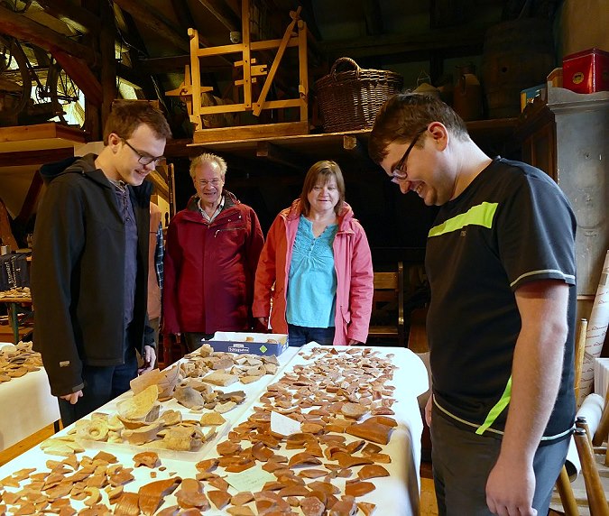 Archäologen datierten am Donnerstag, den 14.11. die in Niedernberg bei Bauarbeiten und Grabungen gefundenen historischen Scherben und Fundstücke. Das in über 30 Kisten gesammelte Fundgut, welches in den letzten 70 Jahren von Niedernberger Einwohner zusammengetragen wurde, war im Ausstellungsraum des Geschichtsvereins auf Tischen ausgelegt und nach Epochen sortiert. Diese interessante Ansammlung von Ausgrabungen aus der Vorgeschichte, Bronze- und Eisenzeit, Römer-, Merowinger-, Karolinger- und Neuzeit konnte man am Samstag, den 23. November von 14 bis 17 Uhr besichtigen.