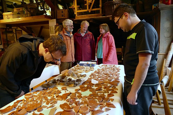 Besonders gefreut hat uns der Besuch zweier jungen, angehenden Archäologen (Studenten der Goethe-Uni in Frankfurt) aus Niedernberg, hier bei der Begutachtung unserer Scherbenfunde.