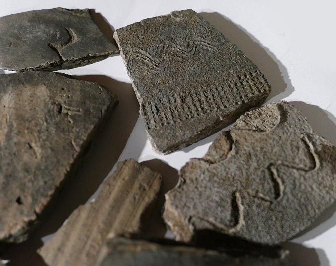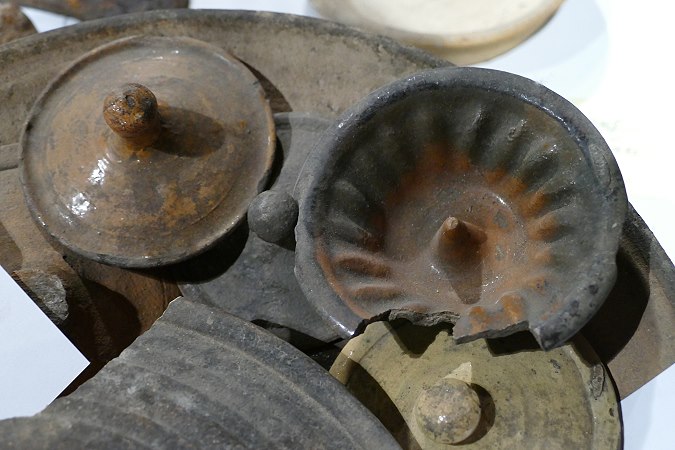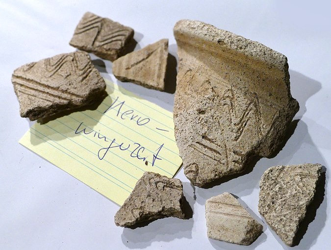 Scherben und Fundstücke. Das in über 30 Kisten gesammelte Fundgut, welches in den letzten 70