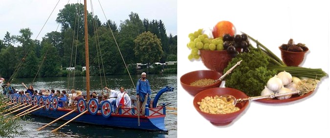 Das Römerschiff wird am Dienstag, den 9. Juni 2020 in Niederrnberg anlegen. In der beeindruckenden Größenordnung von 2007 lässt sich das Ganze aus verschiedenen Gründen nicht wiederholen. Aber z.B. aktive Mitfahrgelegenheiten als Ruderer auf dem Patroulienboot werden geboten (Infos hier... ), auch römische Verpflegung (Eintopf/Alltagsessen, möglichst zusätzlichen mit Beispielen aus der gehobenen Kochkunst der Römer) sowie ein Weinstand (u.a. mit dem Römerwein "Mulsum") und ein Bierstand sind in Planung. Auch ein römischer Kostümwettbewerb "Gladiatoren, Soldaten, Bedienstete/Sklaven, Händler etc.", Bogenschießen und Basteln für Kinder uvm. sind Möglichkeiten, dem Spektakel einen angemessenen Flair zu verleihen. Sobald es nährere Infos gibt, werden diese hier veröffentlicht.