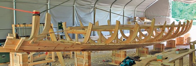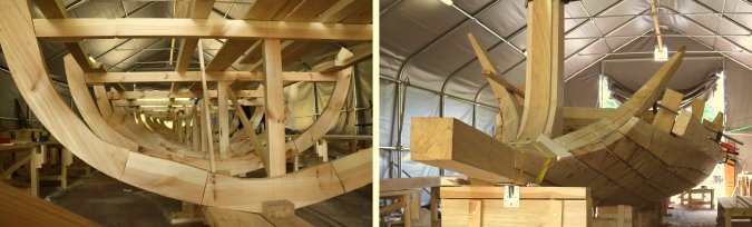 Jetzt wurde wieder ein neues, originalgetreu rekonstruiertes, römisches Patroulienboot nach Vorlage der beiden 1989 entdeckten römischen Patrouillen- und Geleitzugboote gebaut. Nachfolgend Fotos von der Enstehung des Rumpfes, in Regie des gemeinnützigen Vereins "Erlebnis Geschichte und