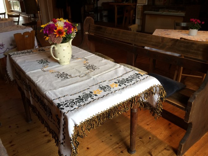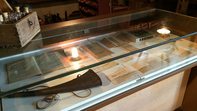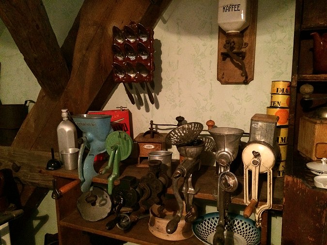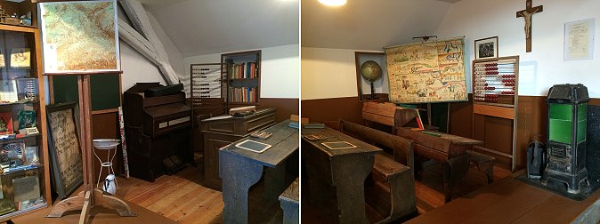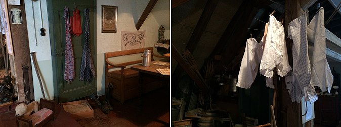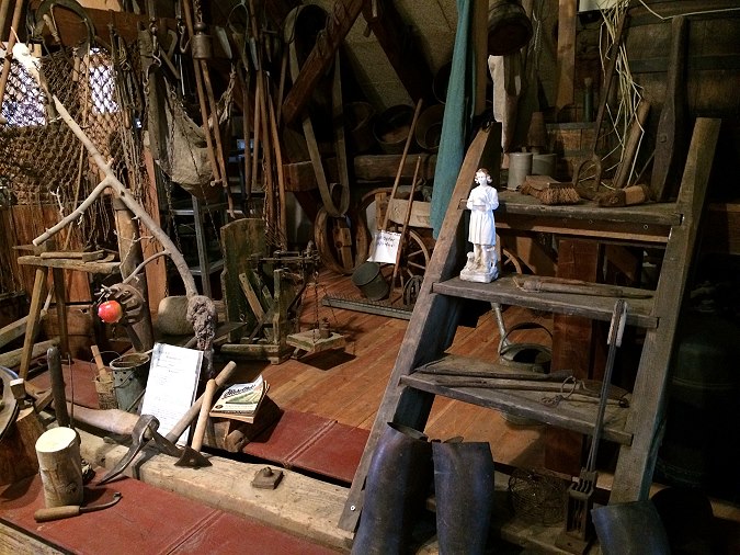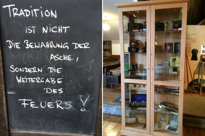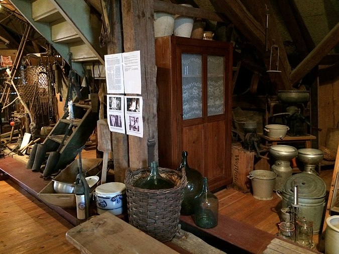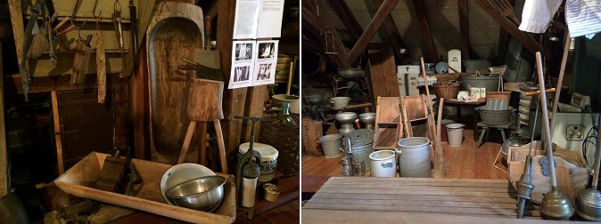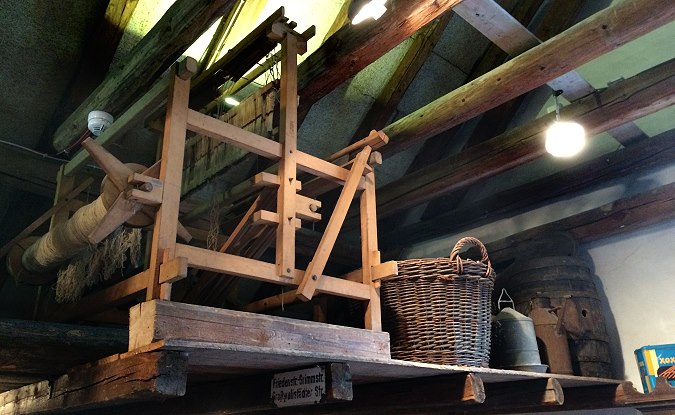 Signalhorn des Sauhirten (oben) und alter Webstuhl unten