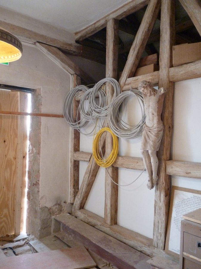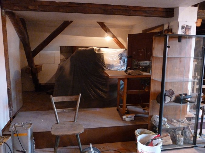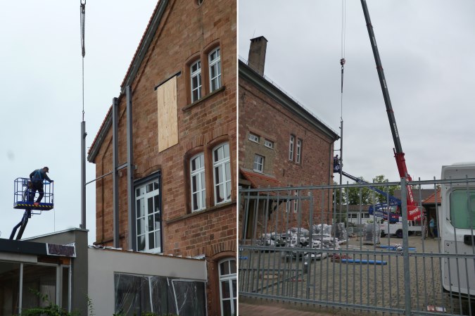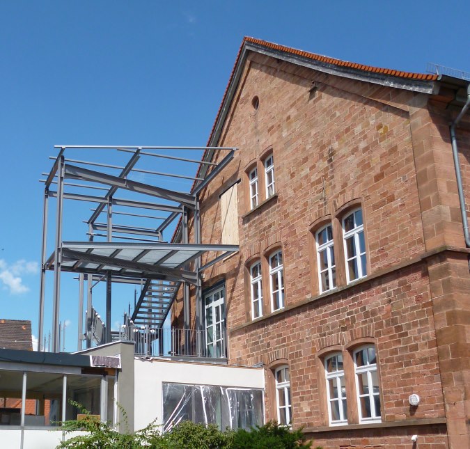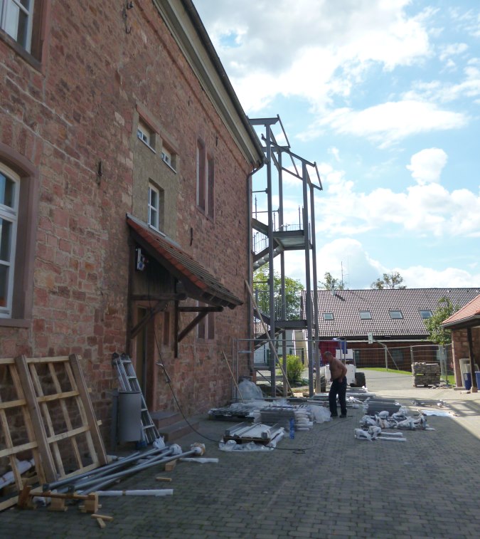 Impressionen rund um die Sandsteinschule und unseres Vereinsraumes während den umfangreichen Baumaßnahmen Anfang 2014, welche der Anbau der Treppe und des Fahrstuhls mit sich brachten.