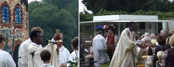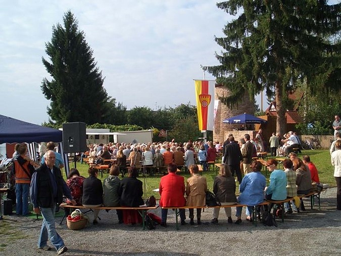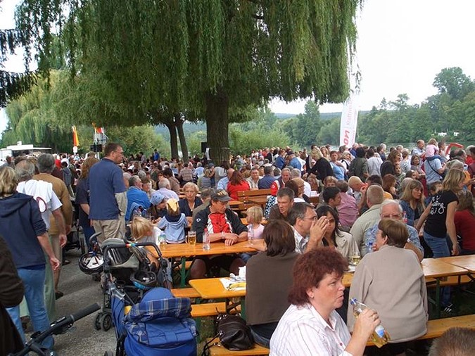 Nach der Kirchenparade zu den Mainwiesen stand der feuerliche Gottesdienst und danach der Frühschoppenauf dem Programm.