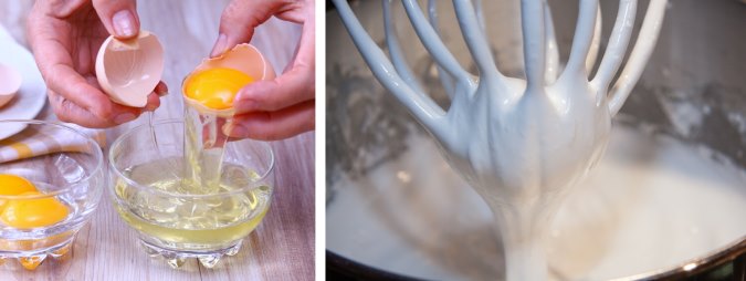 Eiweiß sauber von Eigelb trennen und in fettfreier Schüssel mit Schneebesen steif rühren, detallierte Infos gibt es hier....