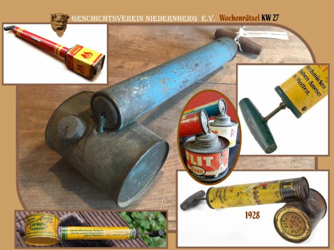 Begriff für dieses Teil lautete "Flitspritze", ein per Handpumpe betriebener Drucksprüher.