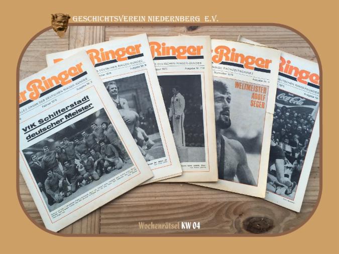 Ringerbundes" ernannt. Die Postkarte wurde im Heft 3 (Dezember 1975) abgedruckt. Mit unterzeichnet hatten u.a. die damaligen Top-Ringer Gerhard Sattel, Fritz Niebler und Heinz Eichelbaum. Weitere Grußkarten, z.B. von den Olympischen Spielen 1976 in Montreal und aus Leningrad sind ebefalls in den Magazinen zu finden.