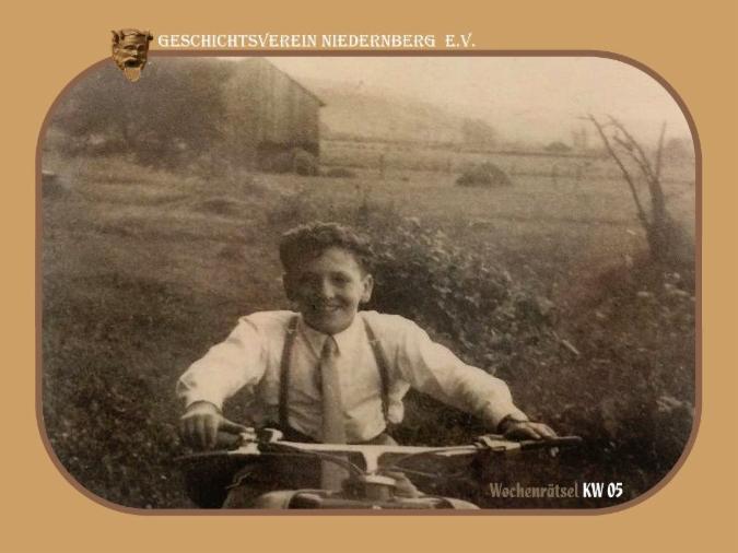 Es ist Friedrich Morczinczyk, liebevoll im Ort auch "Tapeten-Fritz" genannt, im Alter von ca.16 Jahren (1960) in Kleinwallstadt. Mehr Infos und Bilder zu ihm und seinem späteren Farben- und Tapeenmarkt gibt es hier... in der Serie "Niedernberger Persönlichkeiten".