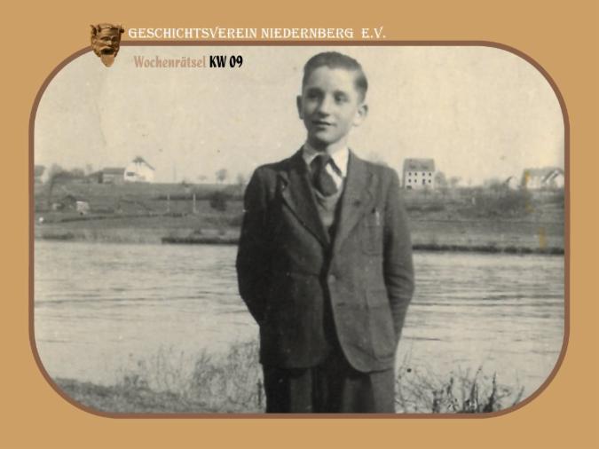 Ein wahrlich fescher Bub, der hier am Ufer neben dem Rondell steht. Links im Hintergrund erkennt man die offenen Bahnschranken. Um welche Niedernberger Persönlichkeit, die in der Öffentlichkeit stand oder einen hohen Bekanntheitsgrad erreichte bzw. um welches historische Ladengeschäft, Firma, Salon, Praxis oder Wirtshaus handelt es sich hier?