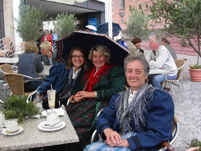 Nach dem Umzug kehrten wir in einem Biergarten ein, das Wetter hielt. Guter Laune sind auch Rosi, Liesel und Irmgard