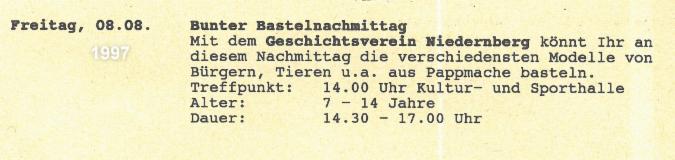 Ferienspiele 1997: Bastelnachmittag: Kreatives Basteln mit Pappmache