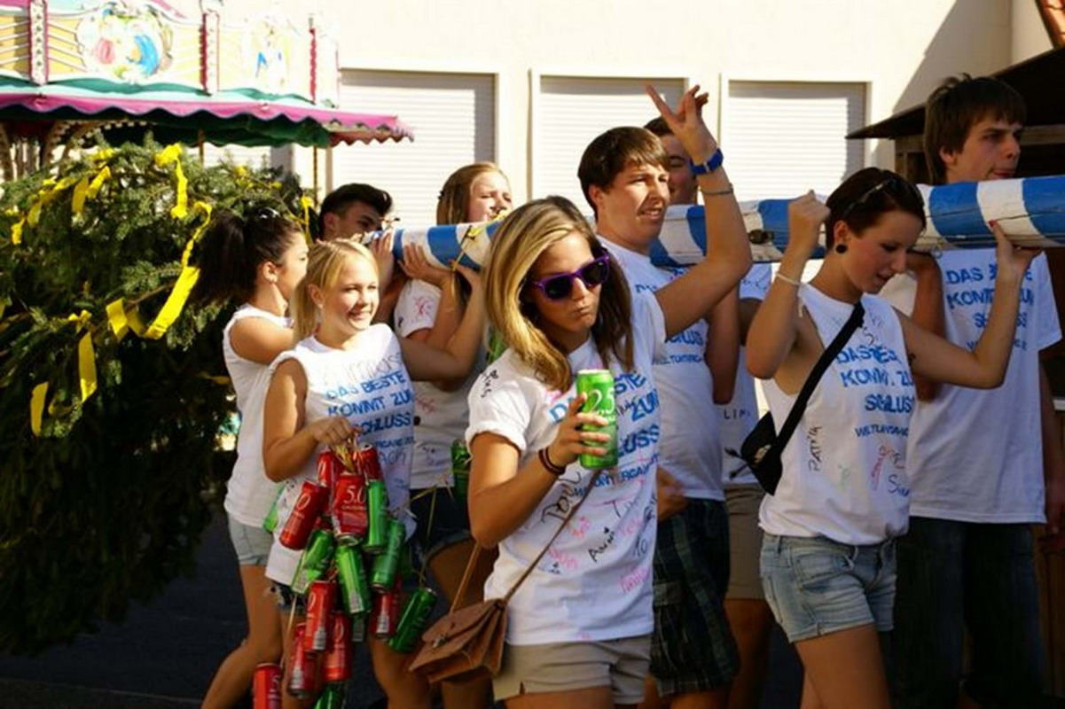 zunächst auf dem Schulhof im Ortskern, ein Jahr später im Altortbereich. (Heimatbuch