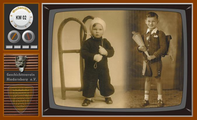 Selbstbewußt steht der Knabe vor einem Hörnerschlitten, hält das Zugseil fest in Händen. Und so richtig fein rausgeputzt posiert er auf seinem Einschulungsfoto. Beide Aufnahmen entstanden im zweiten Weltkrieg in einem Fotoatelier und lassen uns erahnen, daß es sich nicht um ein kleines Dorf wie Niedernberg handelt. Wer ist der Knabe auf den beiden Bildern?