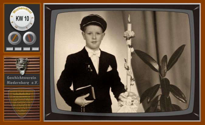 Ein Kommunionbild aus den 1950er Jahren. Etwa um die Zeit, als die ersten von insgesamt 337 Folgen des heiteren Beruferatens „Was bin ich?“ im Fernsehen anliefen und sich Robert Lembke mit dem Spruch „Welches Schweinderl hätten’s gern?“ in der deutschen Fernsehgeschichte verewigen konnte.