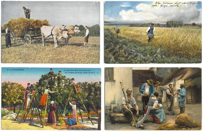 Historische Ansichtskarten über Dorfleben, Landwirtschaft, Ernte, Bauernhof, Almleben u.v.m.