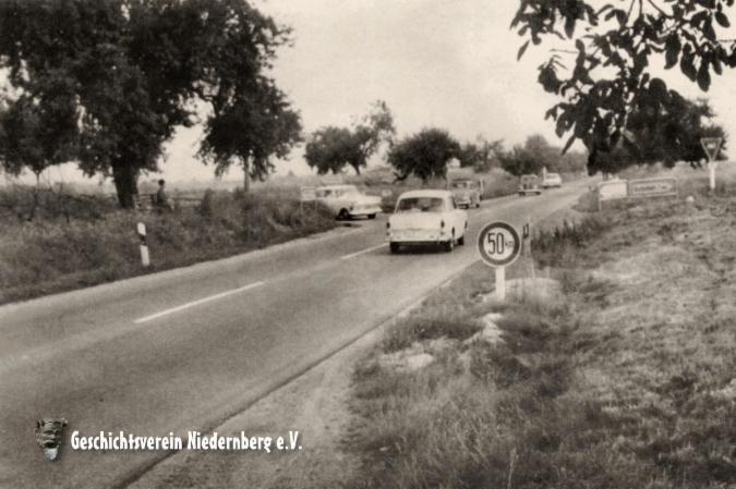 Die letzten der damals gepflanzten Bäume (siehe Foto von 1968) verschwanden mit dem Ausbau zur vierspurigen Schnellstraße (B469).