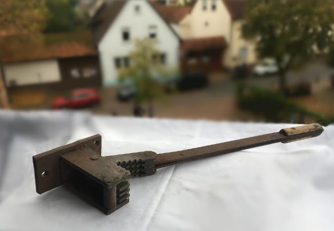 (Gewerbeverzeichnis und mdl. Überlieferung) ... der abgebildete "Kochenbrecher" war früher seitlich an einem Tisch im Stall geschraubt, wo die aus Essenresten gesammelten Knochen zerkleinert und zu Hühnerfutter verarbeitet wurden. Die Splitter der gebrochenen, kalkhaltigen Knochen wurden dann dem Hühnerfutter beigemischt, zum Teil auch noch zermahlt, und führten zu einer besseren Eierschalenbildung. Knochenpresse ist der heutzutage der gängige Ausdruck. Denn ähnliche Geräte gibt es auch aktuell noch, um biologisches Futter aus Grünabfällen und Knochen für vitale und gesunde Tiere herzustellen.
