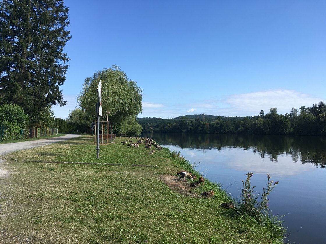 ca. 12 Uhr: Ab Erreichen des Mainufers begleitet uns die alte Niedernberger Mainfähre auf dem Naturboulevard "Sairoa"