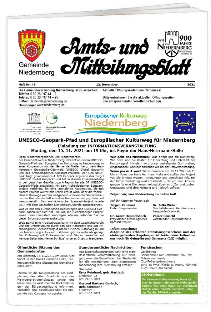Ankündigungen u. Einladung zum öffentlichen Informationsabend am 15.11.22 im Niedernberger Amtsblatt, KW 43 - 45.