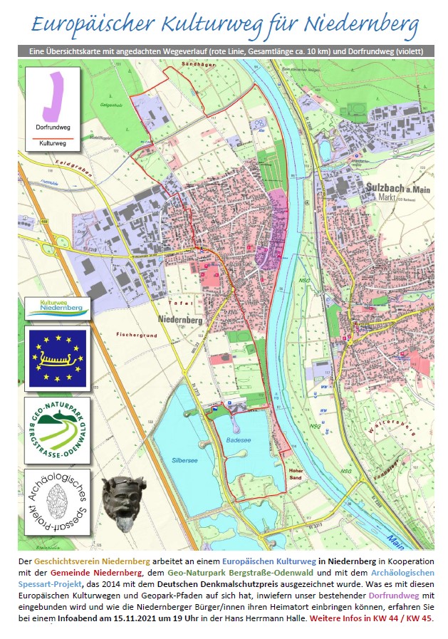 Mit Absprache des Geo-Naturparks kontaktiert der Geschichtsverein Niedernberg Herrn Dr. Himmelsbach von Spessartprojekt (Europäische Kulturwege). Dieser ist an dem Vorhaben interessiert und schlägt eine gemeinsame Begehung des geplanten Wegverlaufes vor.