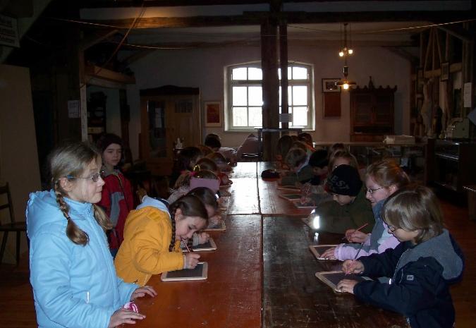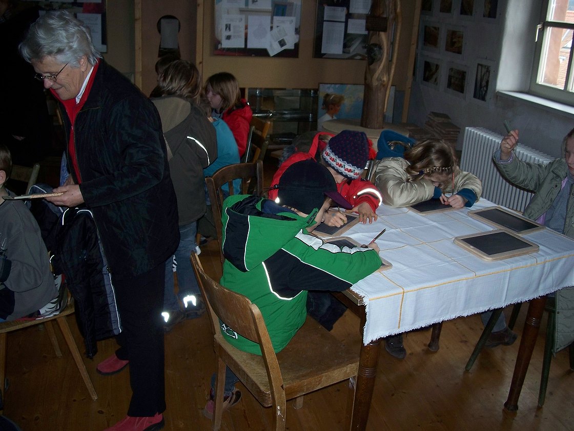 Schule mal ganz anders - abseits der Ferienspiele finden auch immer wieder mal Besuche von Schulklassen im Sammelsurium statt. Für die Kinder ist es eine interessante Zeitreise in die Schulzeit ihrer Groß- und Urgroßeltern.