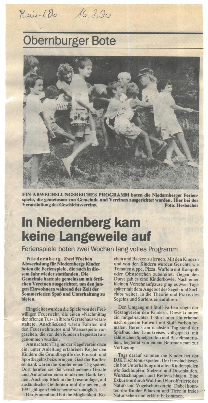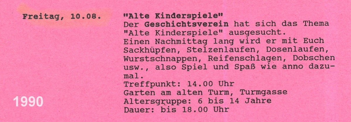 Ferienspiele 1990 - Alte und teilweise in Vergessenheit geratene Kinderspiele